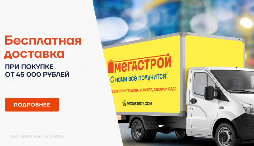 Акция "Бесплатная доставка* от 45 000 рублей" распространяется только для жителей Ульяновска на один адрес, согласно бланку заявки на доставку покупателю при разовой покупке товара на сумму от 45 000 рублей!