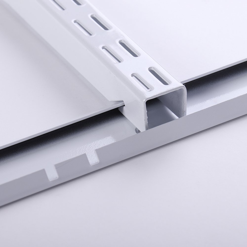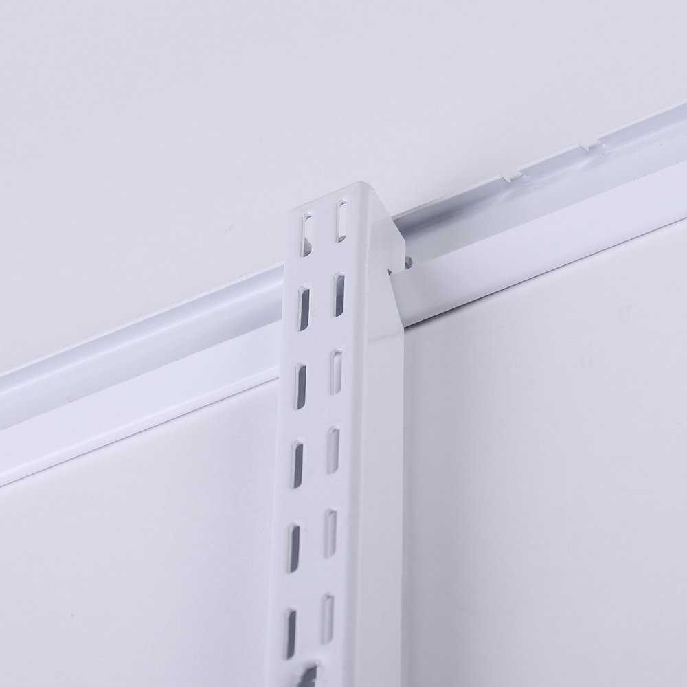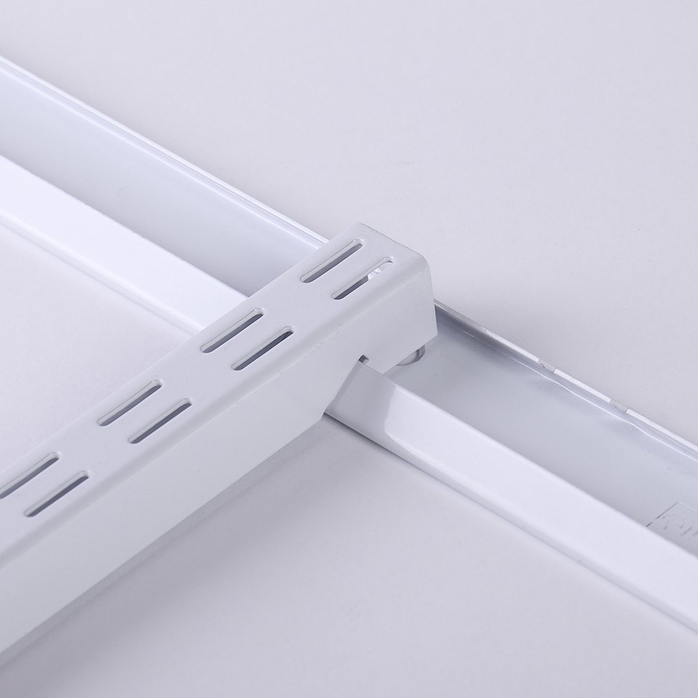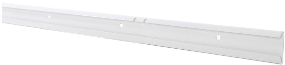 Крепится к стене горизонтально с помощью саморезов. Служит для расположения на нем перфорированной стойки. Позволяет перемещать стойку вдоль рельса на необходимое расстояние.