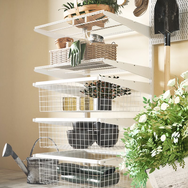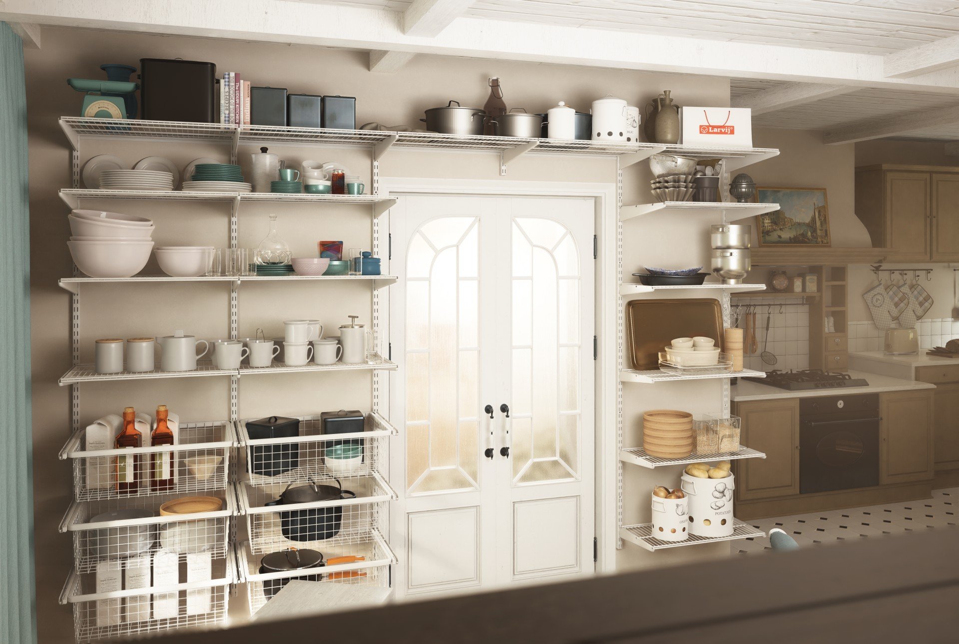 Мелкосетчатая корзина для стеллажной и системы Larvij изготовлена из высококачественной стали. Лаконичный и стильный дизайн. Используется вместе с выдвижной рамой или с рамами для стеллажей.