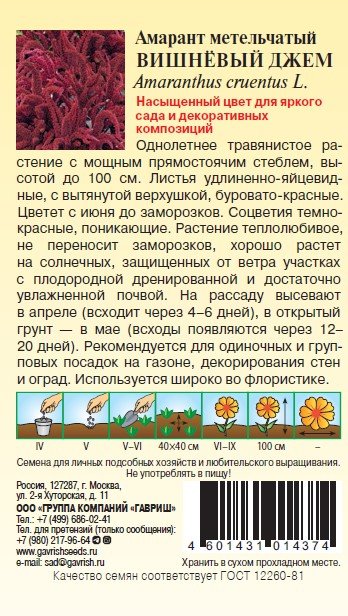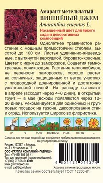 - Семена Амарант Вишневый джем метельчатый 0,1г