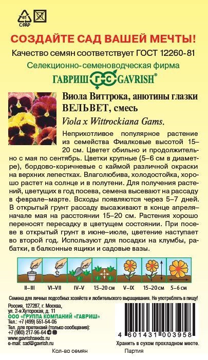 - Семена Виола Вельвет Виттрока смесь 0,05г