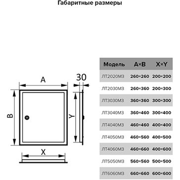 Люк-дверца ревизионный с фланцем и замком, стальной, с покрытием полимерной эмалью. Для доступа к скрытым узлам и инженерным коммуникациям.