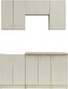 Конструкция напольных шкафов в данной комплектации рассчитана на хранение на полках. При желании, систему хранения можно модернизировать, докупив и установив внутренние аксессуары, совместимые с габаритами модулей.