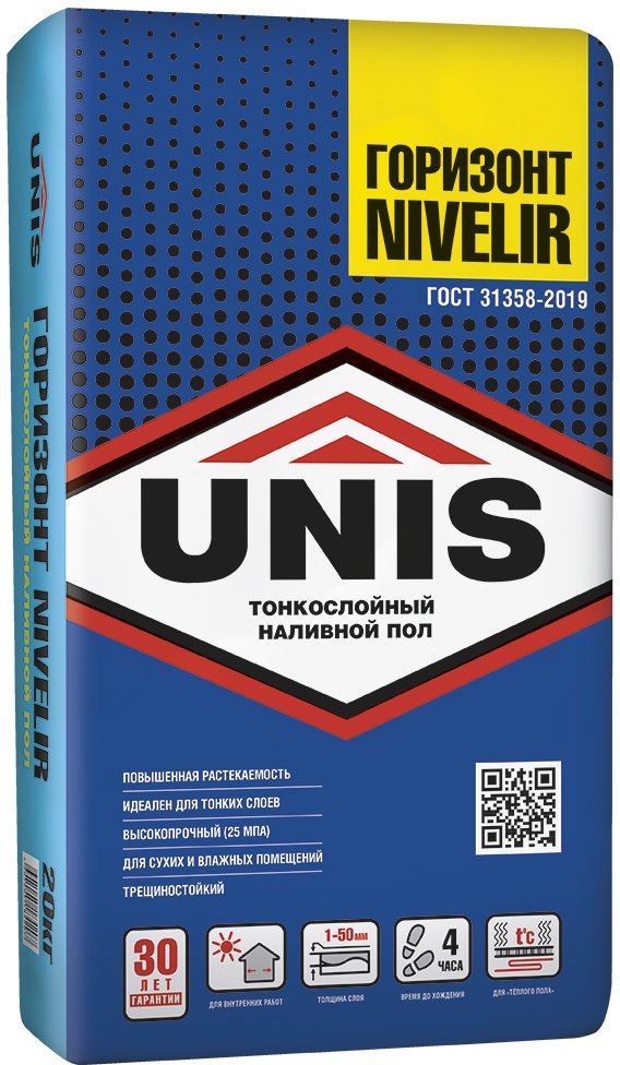 - Пол наливной финишный Юнис Горизонт NIVELIR 20кг