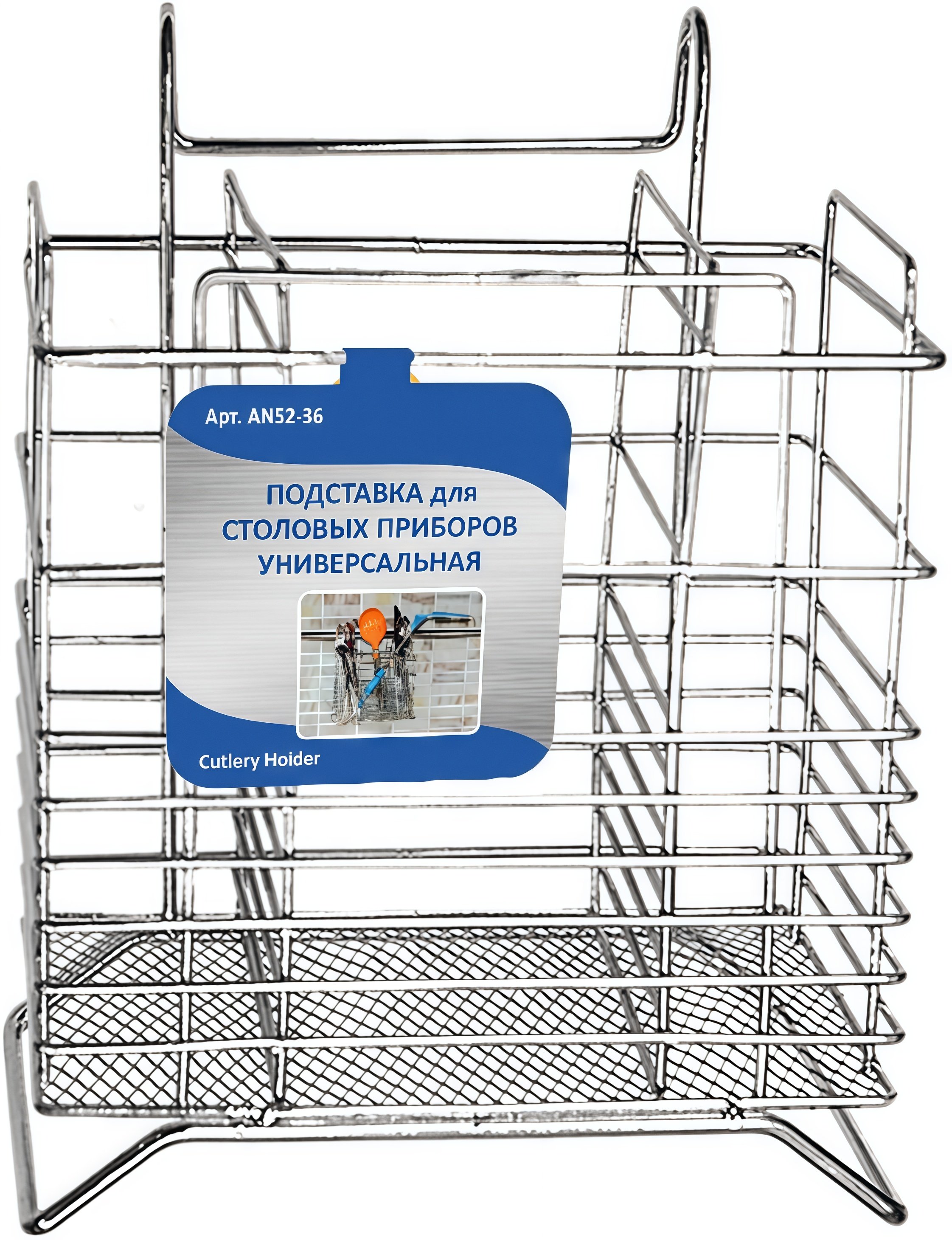 - Подставка д/столовых приборов MultiDom 15х10х18см хром.сталь