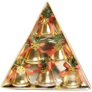 Чтобы декорировать елочку модно и элегантно, подвески на ней должны сочетаться между собой и с убранством комнаты. Важно не просто развесить свой "клад", но и хорошо продумать, где поместить ту или иную деталь. Один из самых простых способов решения этой задачи - выбрать елочные украшения одной цветовой гаммы. В этом вам поможет набор колокольчиков из 6 предметов в золотом цвете, который сделает украшение вашей новогодней елки еще более привлекательным.