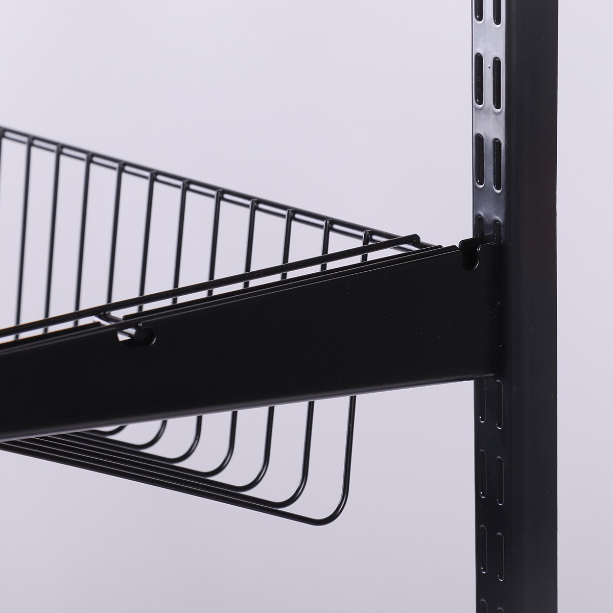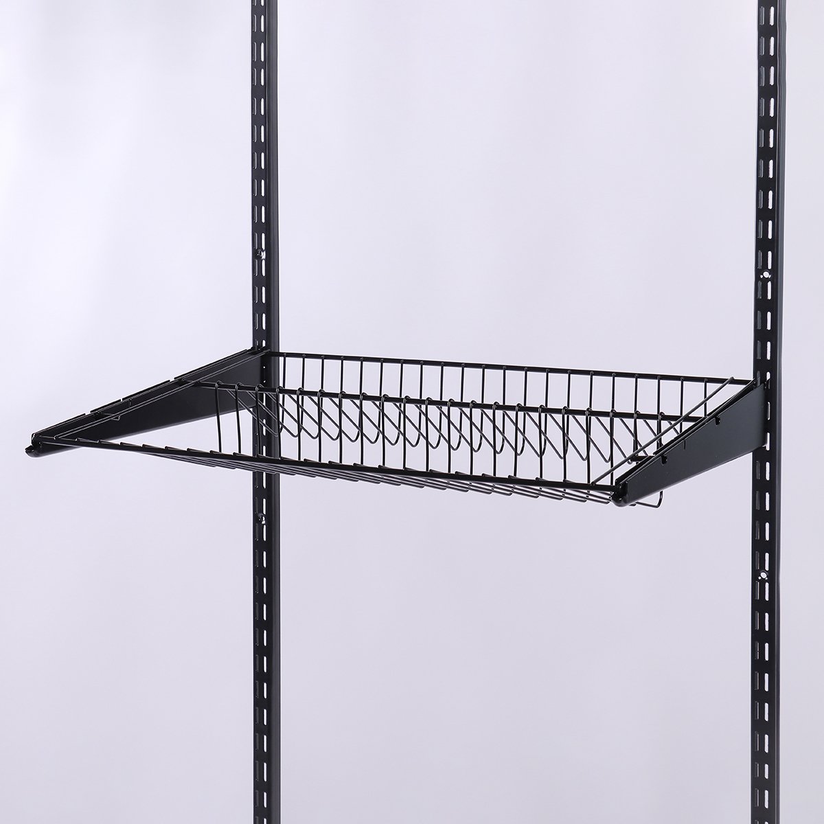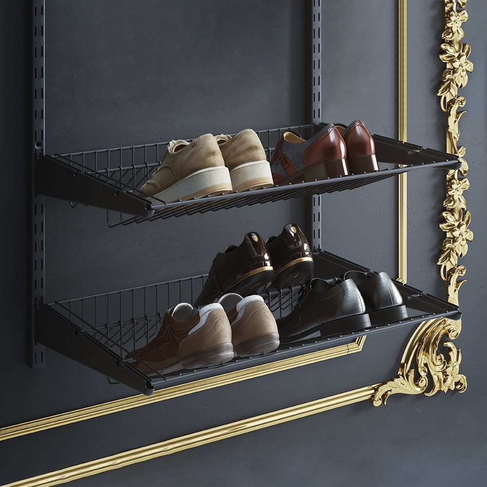 Двухуровневая сеточная полка. Предназначена для хранения обуви. Два ряда позволяют размещать большое количество обуви в системе. Устанавливается на кронштейны серии L9240.