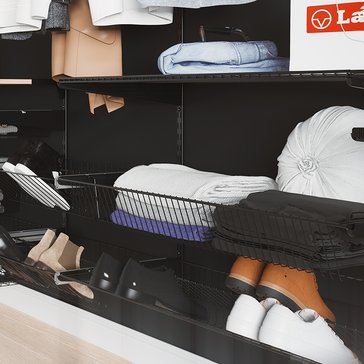 Полки-корзины для гардеробной системы или системы хранения, предназначенной для гаража, мастерской, кладовой или любых других помещений. Устанавливается на кронштейны серии L9240.