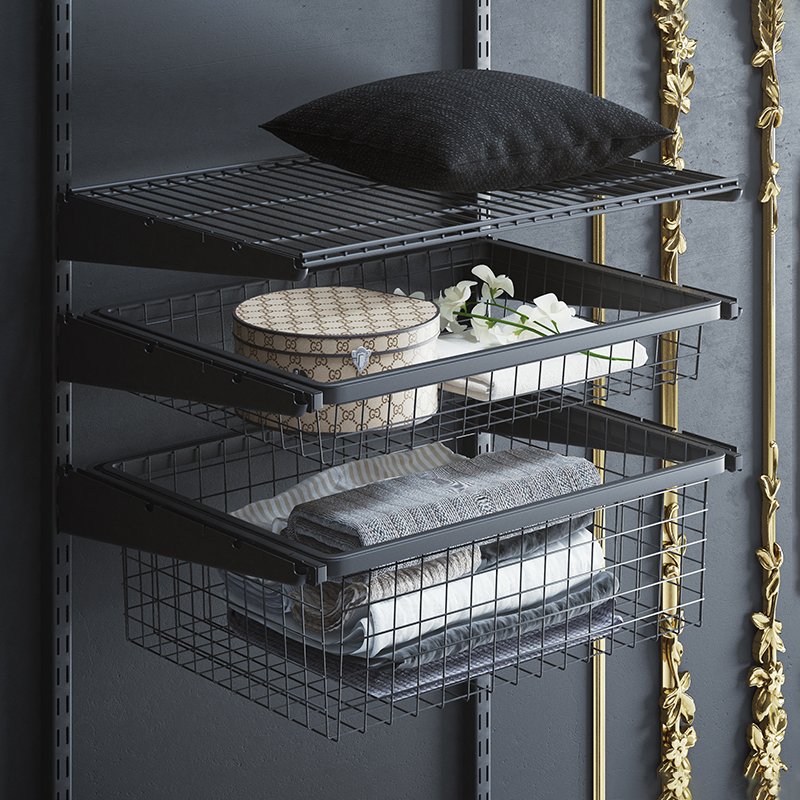 Сетчатая корзина - главная ячейка для хранения ваших любимых вещей в стеллажной системе Larvij. Фиксируется в выдвижном механизме 3,5,7-уровневой рамы для стеллажа или в выдвижной раме для системы.