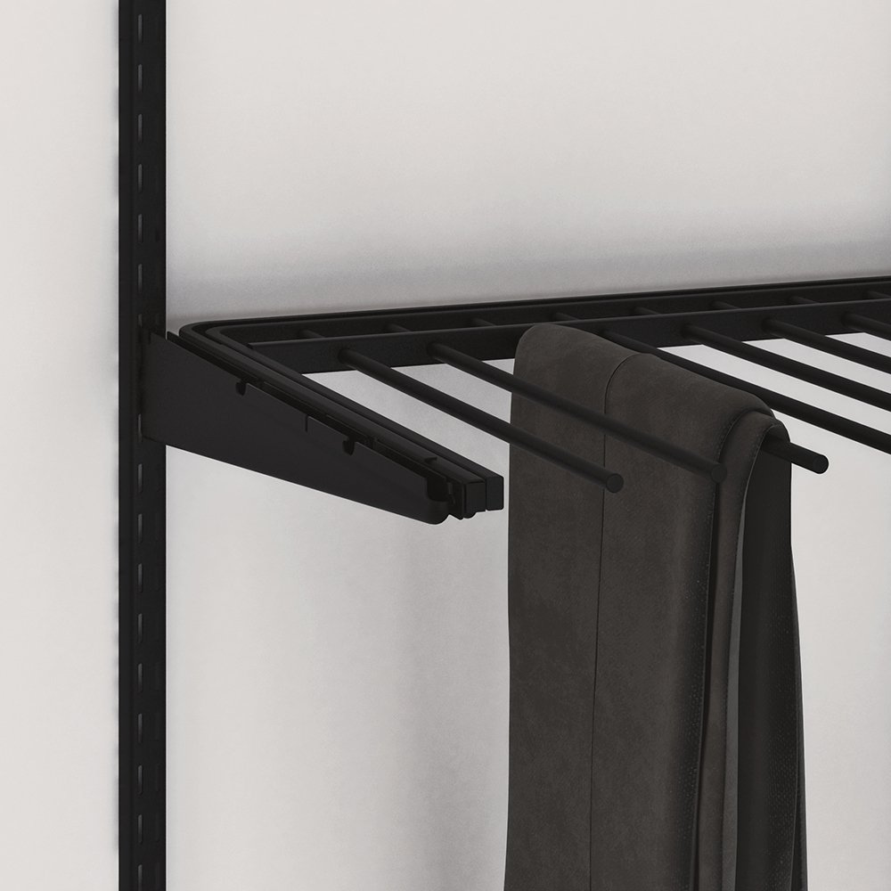 Удобная выдвижная брючница. Рассчитана на 8 пар брюк. Изготовлена из высококачественной стали. Лаконичный и стильный дизайн. Устанавливается на кронштейны серии L9240.