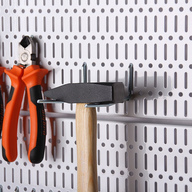 Двойной крючок для хранения инструмента и любых других предметов. Крепится в круглые пазы перфорированной панели.