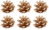Чтобы декорировать елочку модно и элегантно, подвески на ней должны сочетаться между собой и с убранством комнаты. Важно не просто развесить свой "клад", но и хорошо продумать, где поместить ту или иную деталь. Один из самых простых способов решения этой задачи - выбрать улочные украшения одной цветовой гаммы. В этом вам поможет набор шишек 6 шт в золотой расцветке, которые сделают украшение вашей новогодней елки еще более привлекательным.