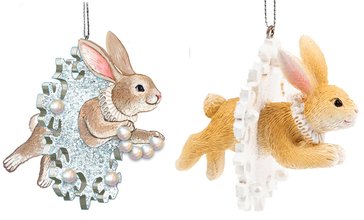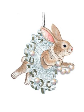 Елочные подвесные украшения из коллекции "Жемчужные кролики" выполнены из полирезины, которая в мельчайших подробностях передает все детали зайчика и снежинки, и смотрится очень реалистично. Коллекция дополнена жемчужинками, как символом кролика согласно китайскому календарю. Игрушка - символ года. Такие игрушки можно использовать как в качестве основного элемента декора, так и дополнение к хвойной композиции, особенно хорошо эти игрушки будут смотреться на елке в стиле Шебби шик. Эксклюзивная игрушка может стать прекрасным подарком на зимние праздники.
