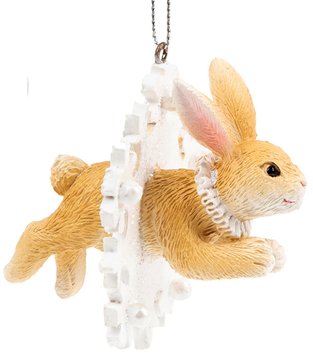 - Украшение подвесное Зайчик в снежинке 7x7x7см 89358