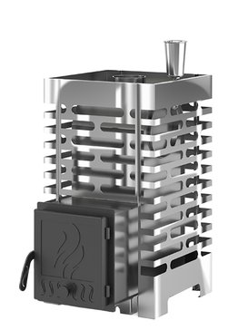Стальной кожух открытой каменки вмещает в себя до 120 килограммов банного камня.