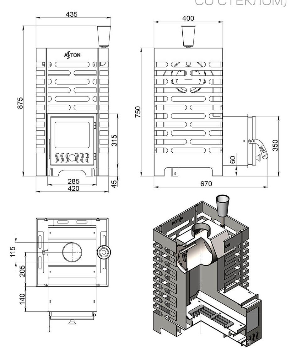 Печь ASTON из нержавеющий стали марки AISI 430 устойчива к окислению и прогару.