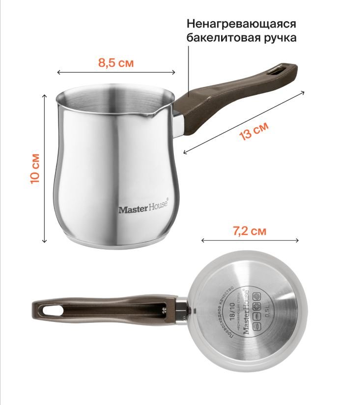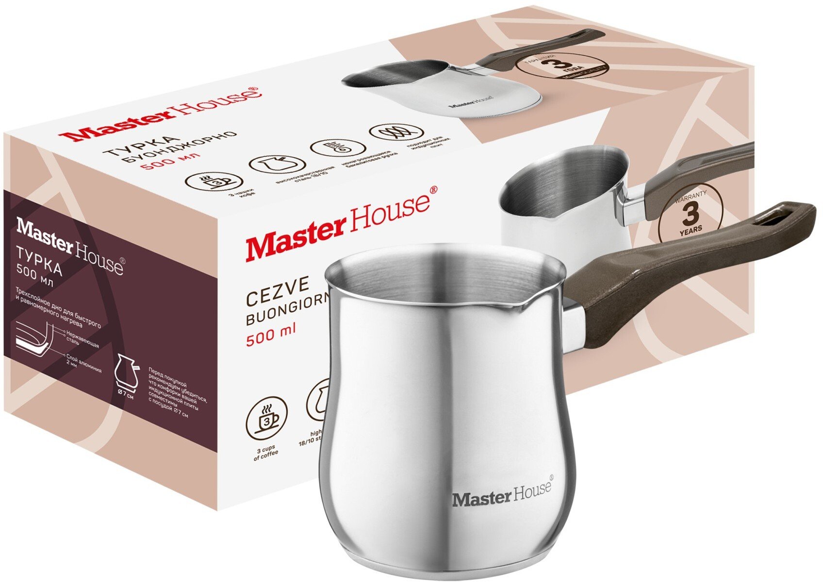 Турка Master House Buongiorno — идеальный выбор для любителей кофе! Эта стильная и функциональная модель объёмом 500 мл станет вашим верным спутником в мире утреннего ритуала.