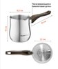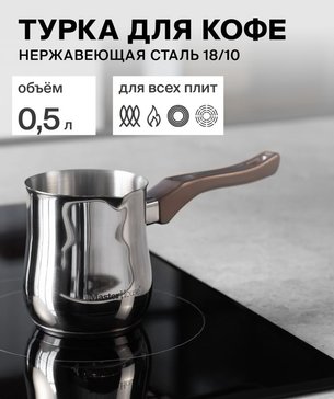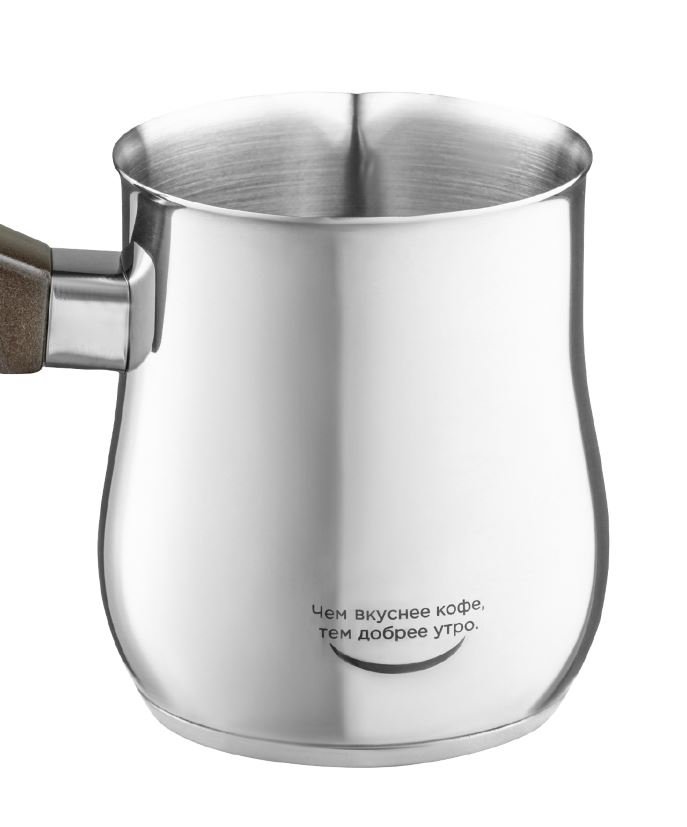 Турка выполнена из высококачественной нержавеющей стали и имеет элегантный дизайн, который впишется в любой интерьер кухни. Благодаря удобной ручке и оптимальной форме, приготовление кофе становится лёгким и приятным процессом.