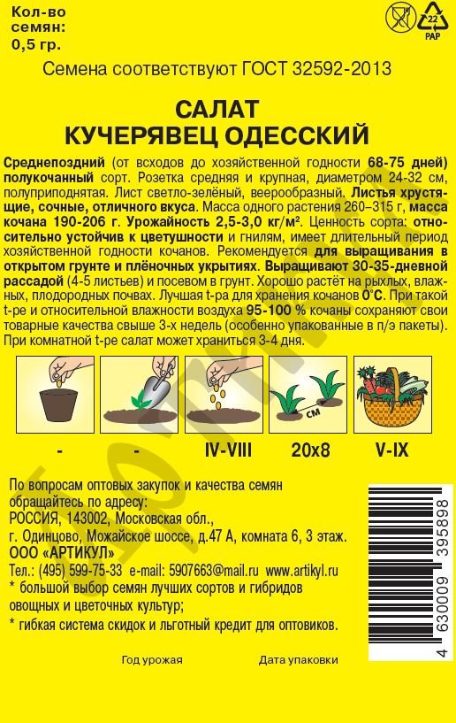 - Семена Салат Кучерявец Одесский 0,5г цветной пакет