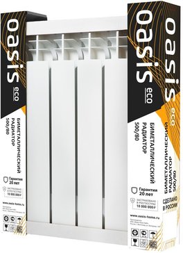 OASIS ECO 500х80 10 секций биметаллический — надёжный и мощный. Отлично греет гостиную. Установка прошла без проблем. Качество — отличное.