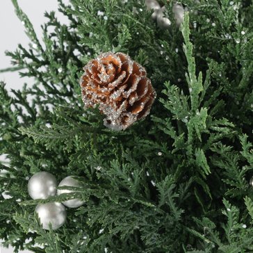 Приятный для глаз зеленый цвет, декоративное и всегда актуальное украшение , а также ее компактный размер придает данной композиции особое очарование. Зимний праздник и новогоднее настроение подарит Вам эта стройная, и компактная северная красавица!