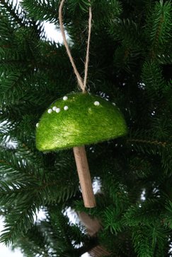 Чтобы декорировать елочку модно и элегантно, подвески на ней должны сочетаться между собой и с убранством комнаты. Важно не просто развесить свой "клад", но и хорошо продумать, где поместить ту или иную деталь. Один из самых простых способов решения этой задачи - выбрать елочные украшения одной цветовой гаммы. В этом вам поможет Украшение фигурное Гриб в зеленой расцветке, который сделает украшение вашей новогодней елки еще более привлекательным.