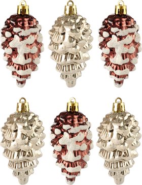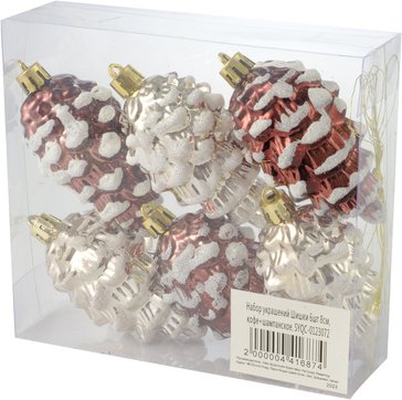 - Набор украшений Шишки 6шт 8см, кофе+шампанское, SYQC-0123072