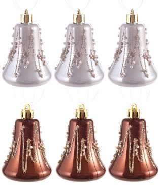 - Набор украшений Колокольчики 6шт 6,5х5см, кофе+шампанское, SYQC-0123075