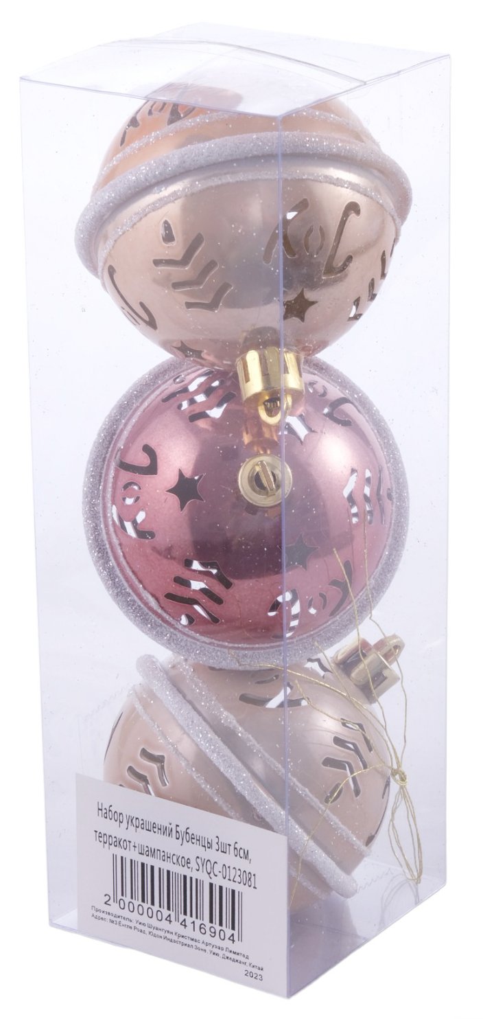 - Набор украшений Бубенцы 3шт 6см, терракот+шампанское, SYQC-0123081