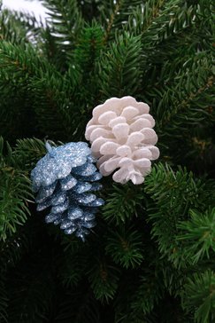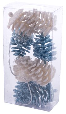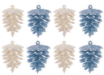 - Набор украшений Шишки 8шт 5,5х4,5см, серо-голубой+белый, SYQC-0123097