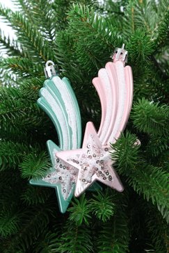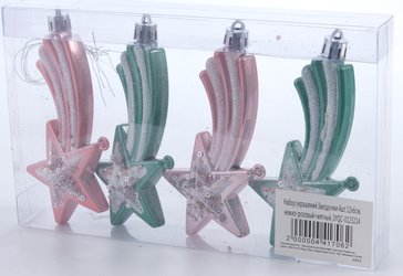Чтобы декорировать елочку модно и элегантно, подвески на ней должны сочетаться между собой и с убранством комнаты. Важно не просто развесить свой "клад", но и хорошо продумать, где поместить ту или иную деталь. Один из самых простых способов решения этой задачи - выбрать елочные украшения одной цветовой гаммы. В этом вам поможет набор украшений из 4 предметов в розово мятной расцветке, который сделает украшение вашей новогодней елки еще более привлекательным.