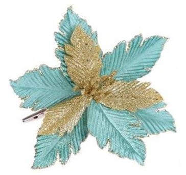 - Украшение елочное Magic Time Бирюзово-золотой цветок на клипсе из черного металла 20х20х17см арт.88694