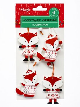 - Украшение подвесное Magic Time Лисички из древесины тополя 4шт в наборе 20x10x0,6см арт.91051