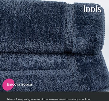 - Коврик для ванной комнаты 65х45см IDDIS PSQS05Mi12 синий, микрофибра