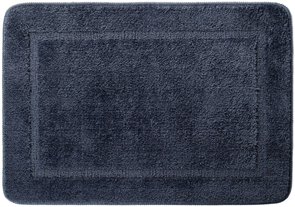 Мягкий коврик для ванной глубокого синего цвета с плотным невысоким ворсом (1 см), очень приятный на ощупь. Ворс из микрофибры отлично держит форму, легко чистится и быстро сохнет. Коврик подойдет для ванной и туалета.