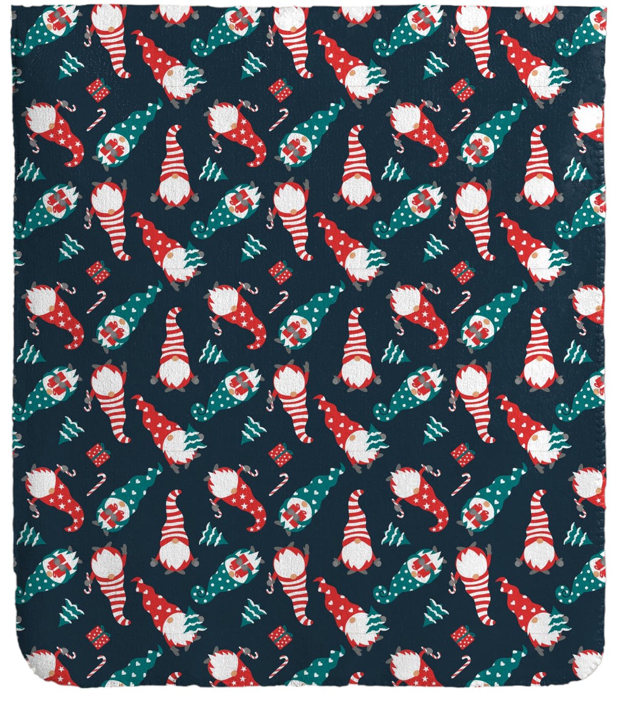 Флисовый плед, Gnomes gifts , размер 120x150. Плед из мягкого флиса согреет в прохладный день. Яркий принт с новогодними гномами и подарками выглядит современно и создает праздничное настроение. Такой плед станет отличным подарком. Края пледа обработаны оверлоком, смотан в рулон, перетянут крафтовой этикеткой.