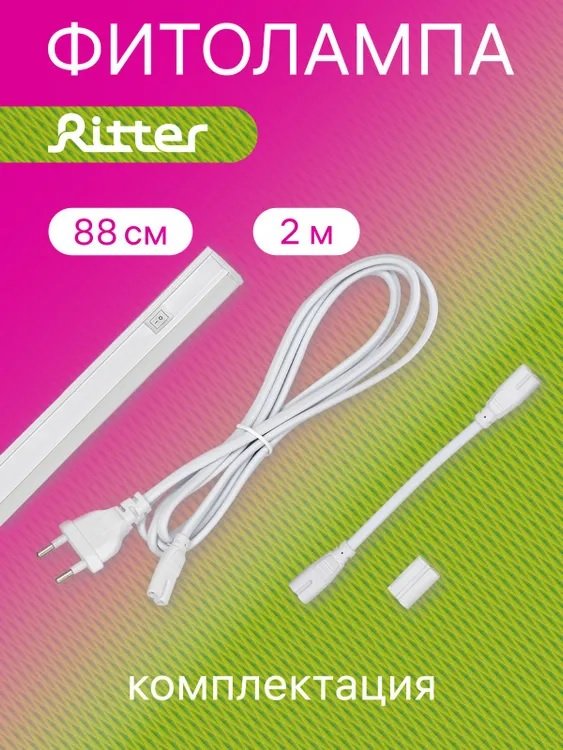 - Светильник Ritter PLANTA для растений красно-синего спектра Т5 14Вт провод 2м белый, 880 мм