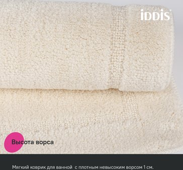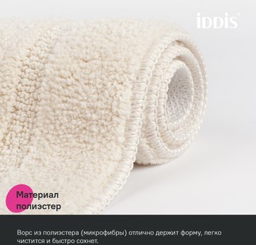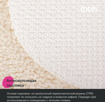 Мягкий коврик для ванной светло-бежевого цвета с плотным невысоким ворсом (1 см), очень приятный на ощупь. Ворс из микрофибры отлично держит форму, легко чистится и быстро сохнет. Коврик имеет вырез под унитаз и предназначен для туалета. • Коврики в ванную противоскользящие: основа из экологичной термопластичной резины (TPR) позволяет не скользить на гладком и влажном кафеле. Подходят для использования в помещениях с теплыми полами. • Благодаря современным влагостойким материалам и качественной обработке краев коврики не потеряют яркости красок, не обветшают и надолго останутся привлекательными как в день покупки. • Несложно ухаживать: разрешена деликатная стирка при температуре до 40оС с жидким моющим средством; не сушить на батарее, избегать солнечных лучей.