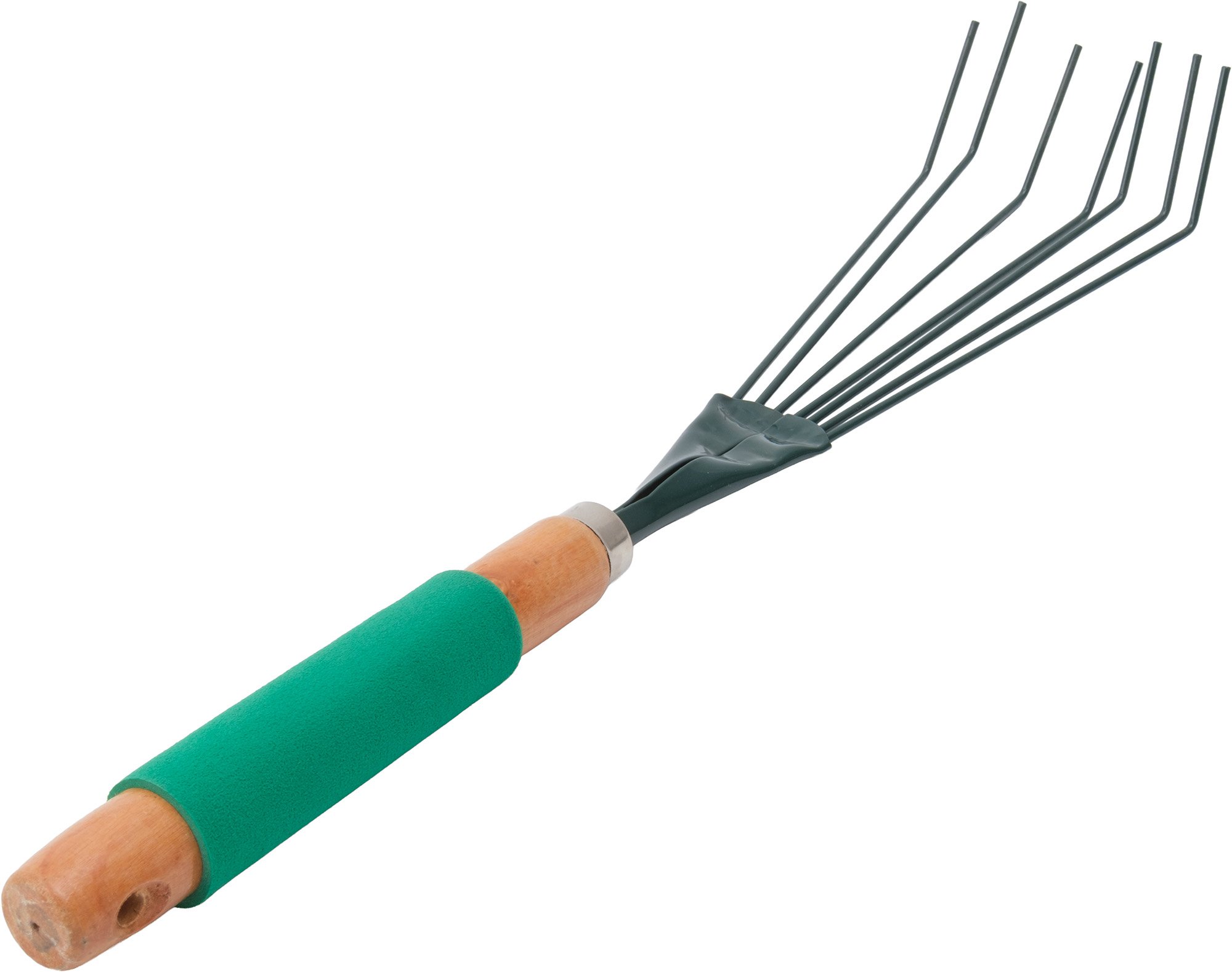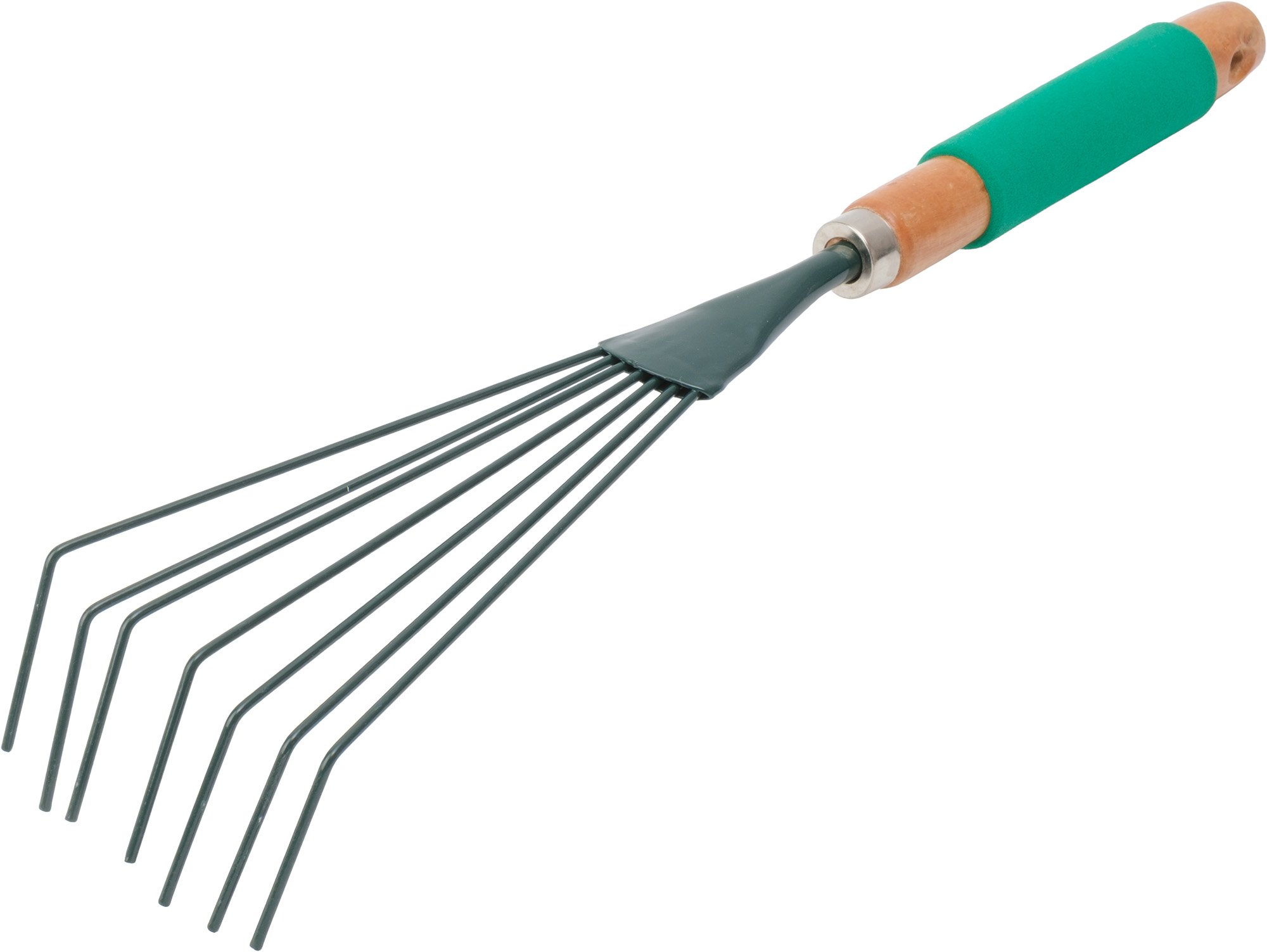 - Грабельки веерные садовые 35,5x6,7см стальные с деревянной прорезиненной ручкой