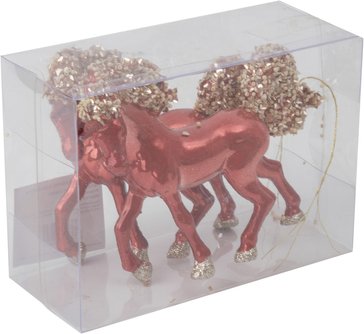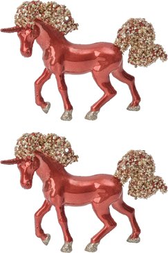 Набор фигурок единорогов — идеальное украшение для вашего дома! В комплекте вы найдёте две стильные фигурки размером 15x11 см насыщенного винного цвета. Эти милые и изящные создания станут прекрасным дополнением к вашей коллекции новогодних украшений или отличным подарком для друзей и близких. Не упустите возможность добавить волшебства и радости в ваш дом с этим потрясающим набором фигурок единорогов!