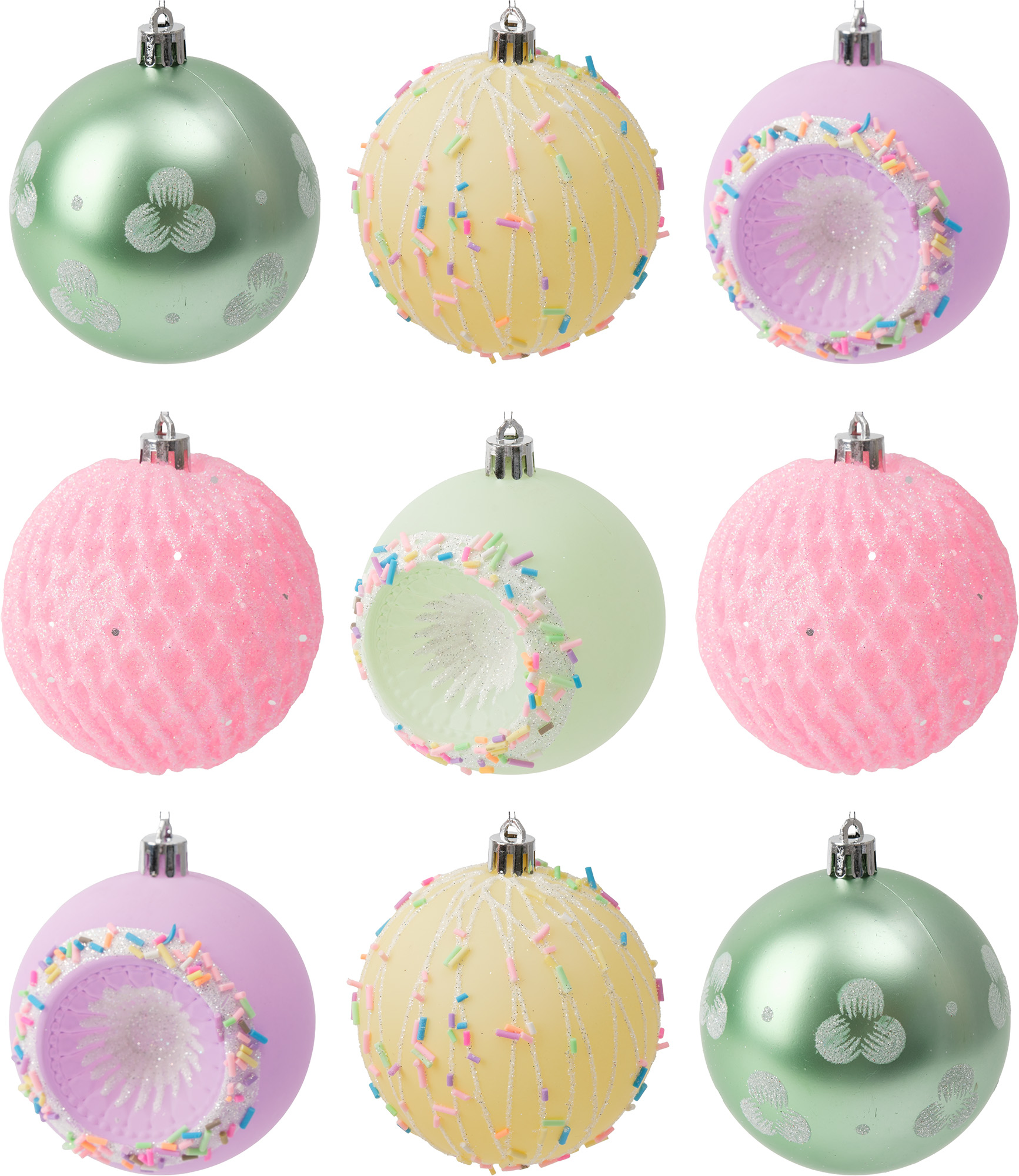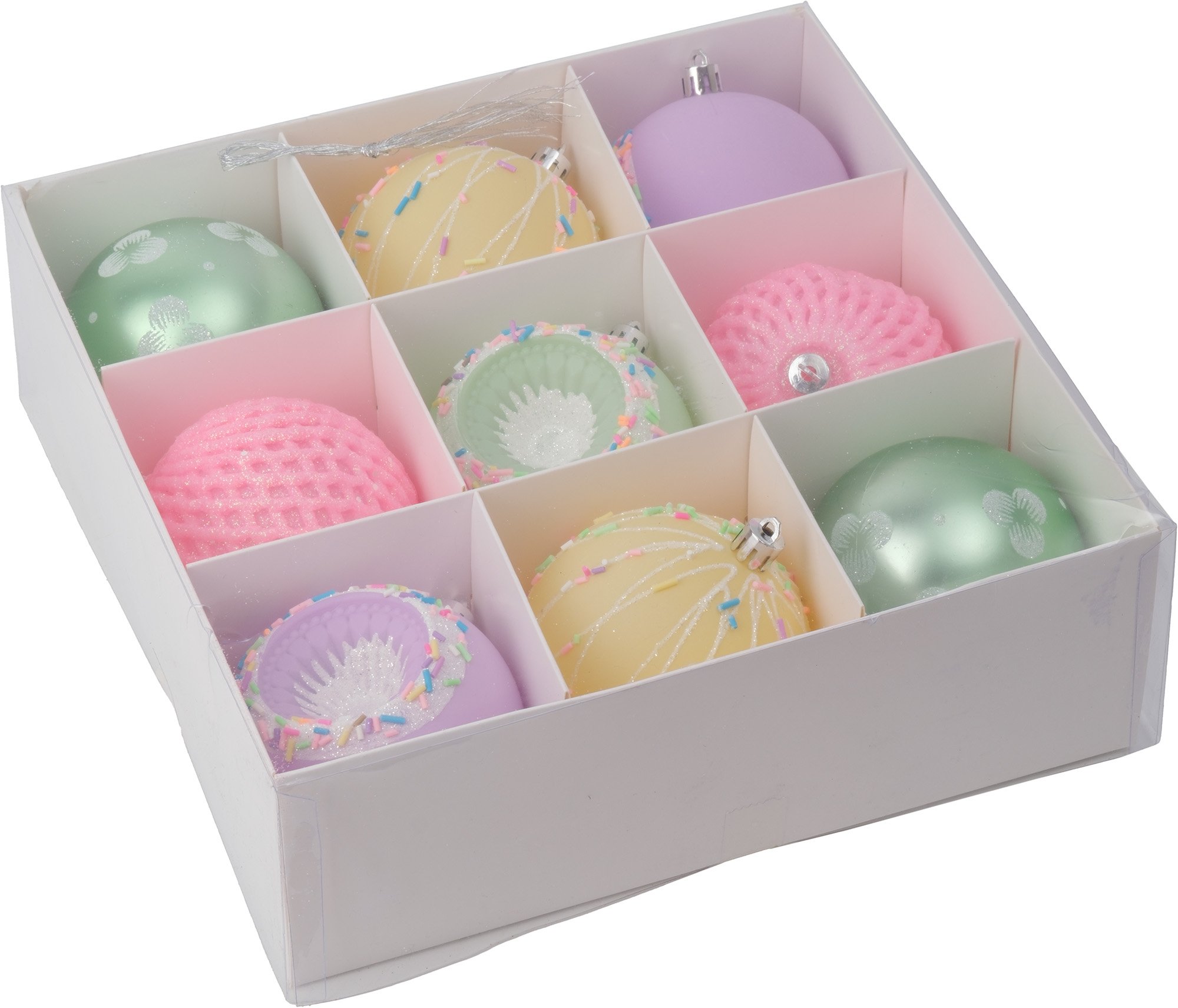 Встречайте Новый год ярко и стильно с нашим потрясающим набором розовых, лиловых и мятных шаров! В комплект входят 9 шаров диаметром 8 см, которые станут прекрасным украшением вашего дома и создадут атмосферу праздника. Порадуйте себя и своих близких этим замечательным новогодним подарком!
