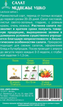 - Семена Салат Медвежье ушко листовой цв/п 0,5г