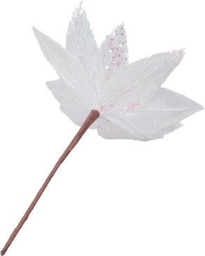 Грандиозный размер – 21 см, привлекает внимание и создаёт впечатляющий акцент Изысканный дизайн – белоснежные лепестки с деликатным блеском Праздничное сияние – блёстки создают эффект звёздного света Универсальность – подходит для любого стиля новогоднего декора Долговечность – сохраняет красоту на протяжении многих сезонов Практичность – не требует ухода и полива
