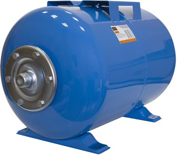 Расширительный бак для систем водоснабжения (гидроаккумулятор) представяет собой работающий под давлением, гидропневматический, стальной сварной бак с патрубком, снабженный сменной резиновой мембраной и воздушным клапаном, обеспечивающими накомпление воды под давлением за счет сжатия воздуха.