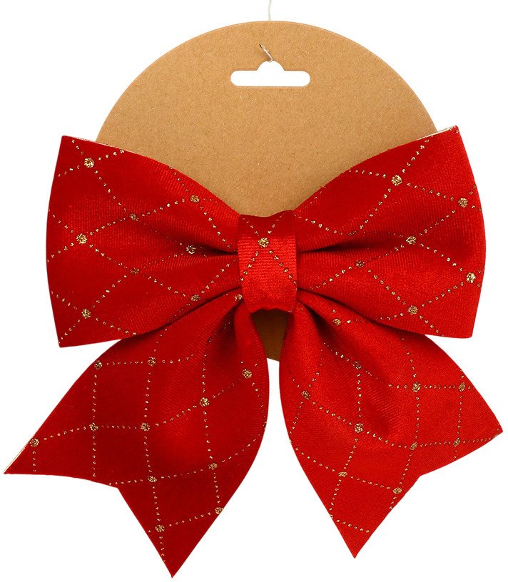 Яркий красный бант — идеальный акцент для новогоднего декора! Размер 15х20см делает его заметным, но не громоздким: он гармонично дополнит подарочную упаковку, ёлочную игрушку, праздничный венок или интерьерный ансамбль.