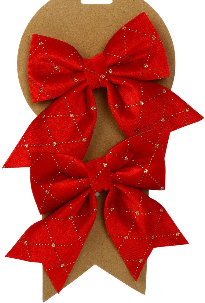 Набор новогодних бантов (2 шт., 12 × 15 см), красный — яркий акцент, который мгновенно преобразит ваш праздничный декор!