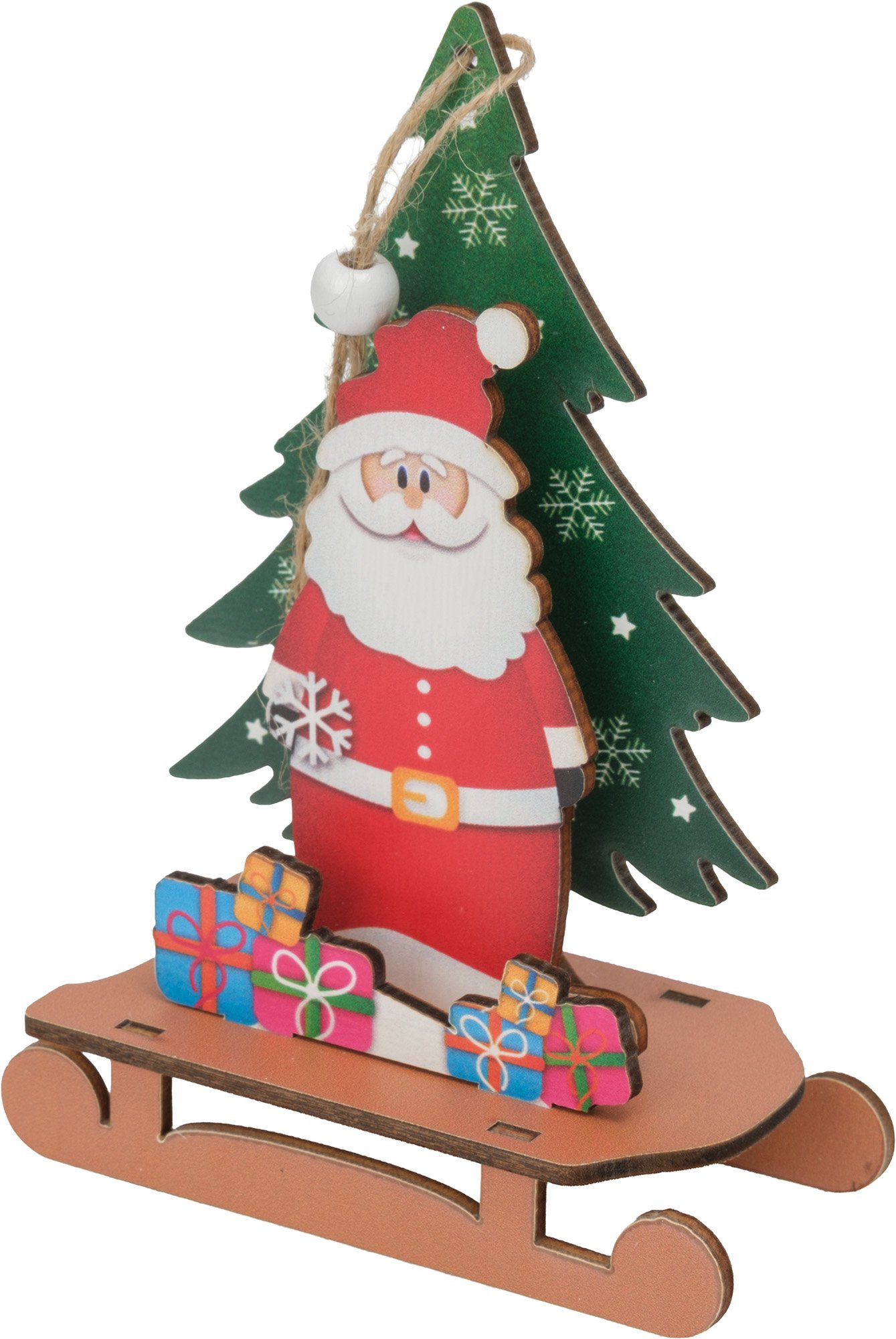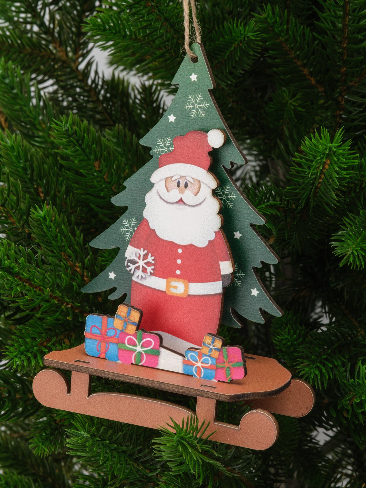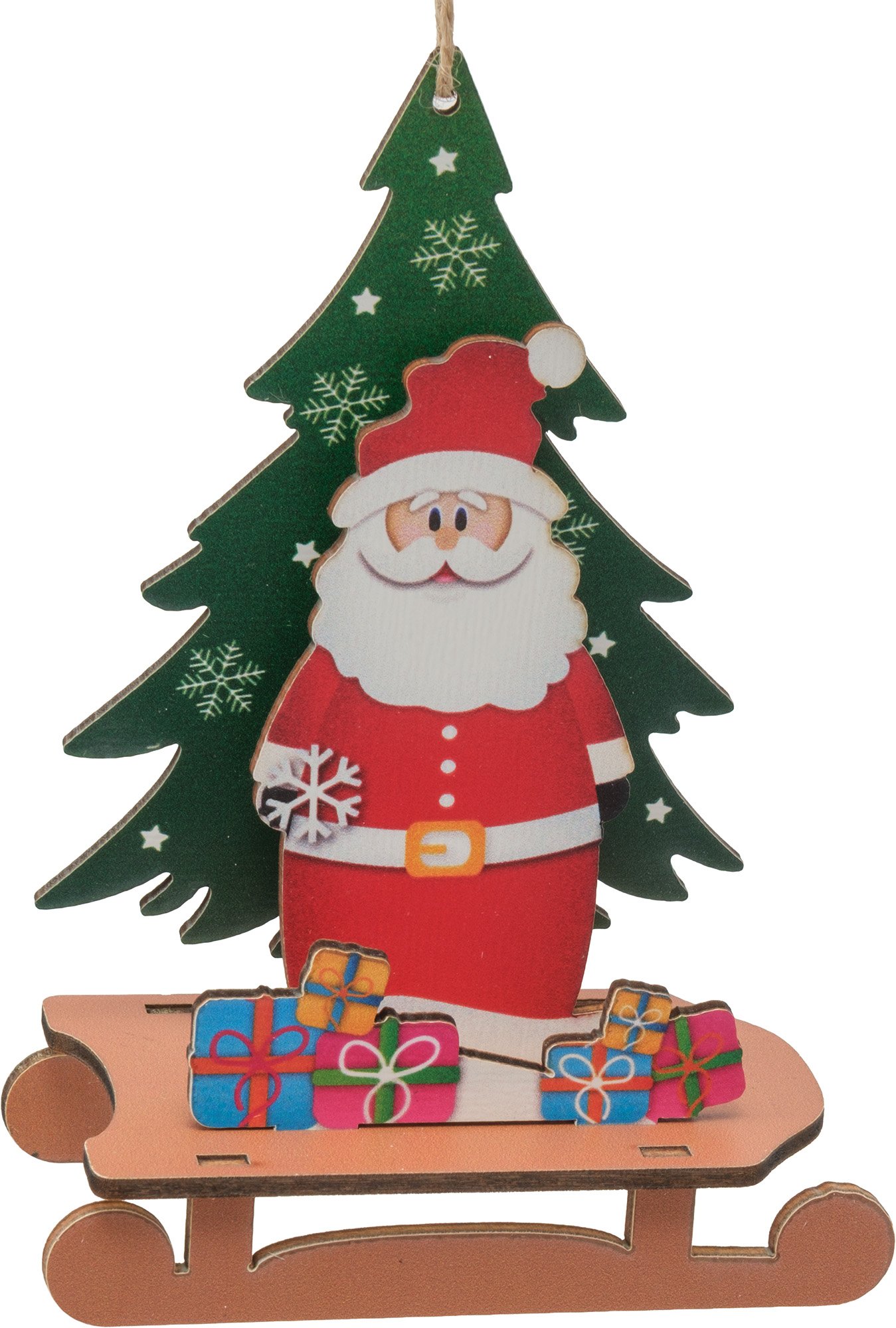 - Украшение фигурное Санта с елкой 14х10см, дерево, SYMZPB-4425013