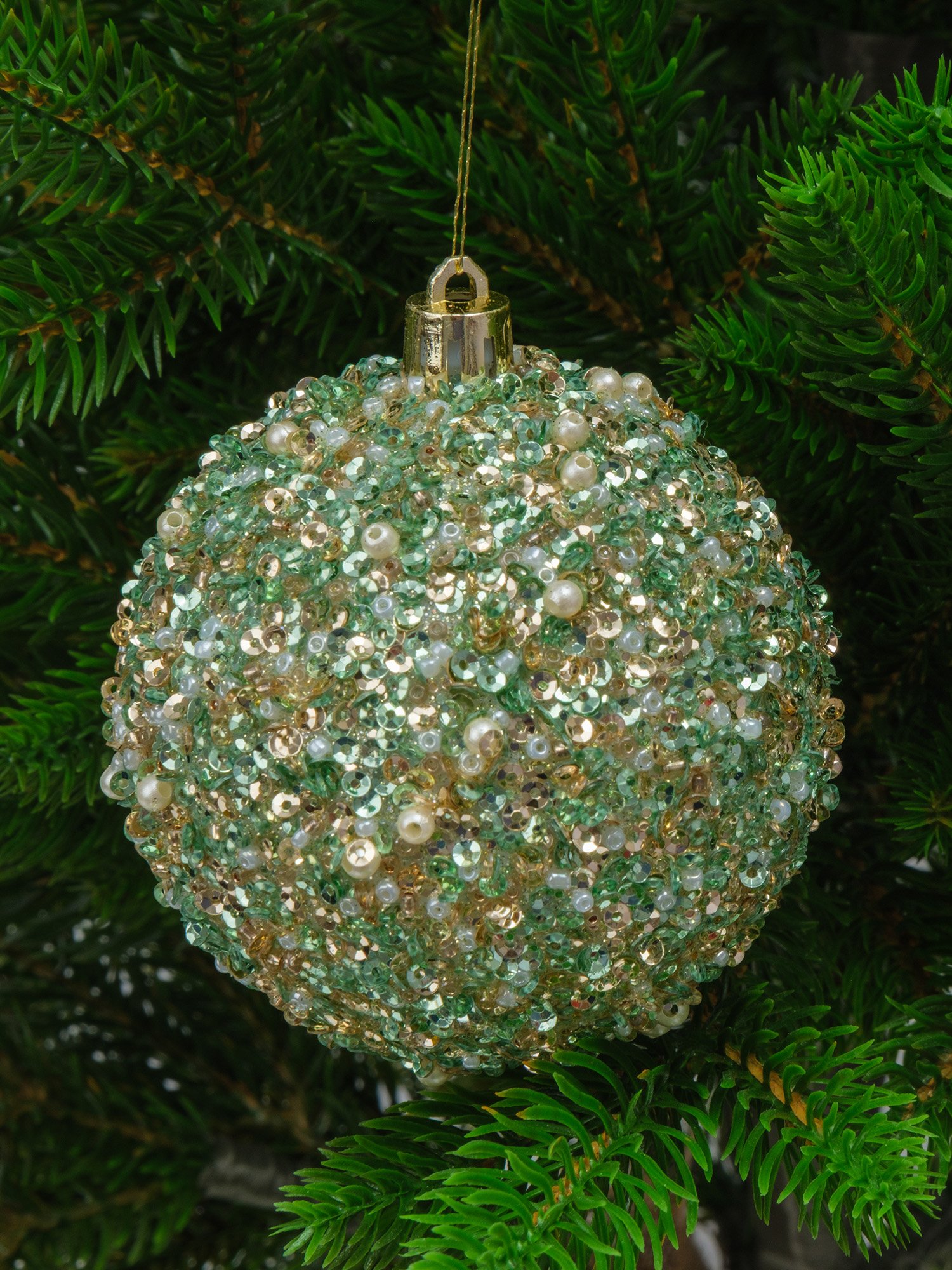 - Набор шаров 3шт 8см, оливковый, с пайетками, SYQB-0125097