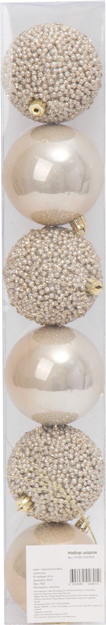 Набор шаров 6шт 8см, перламутр, шампань, SYQB-0125363