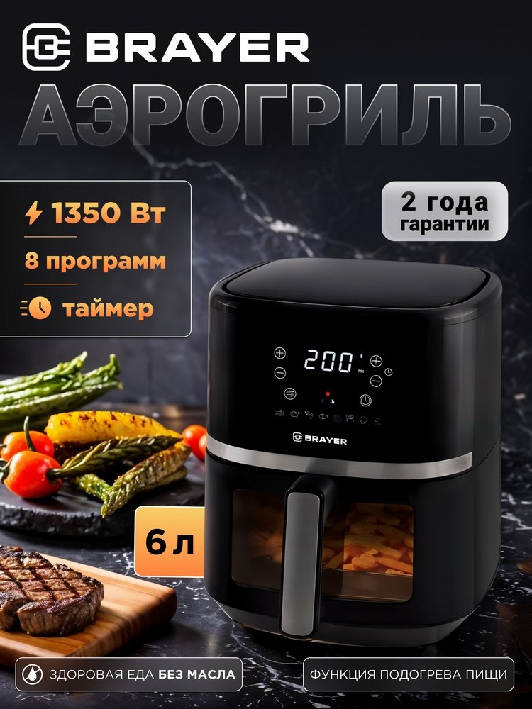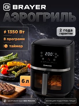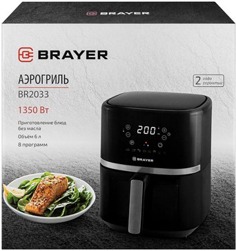 - Аэрогриль Brayer 2033BR 1350Вт 6л черный